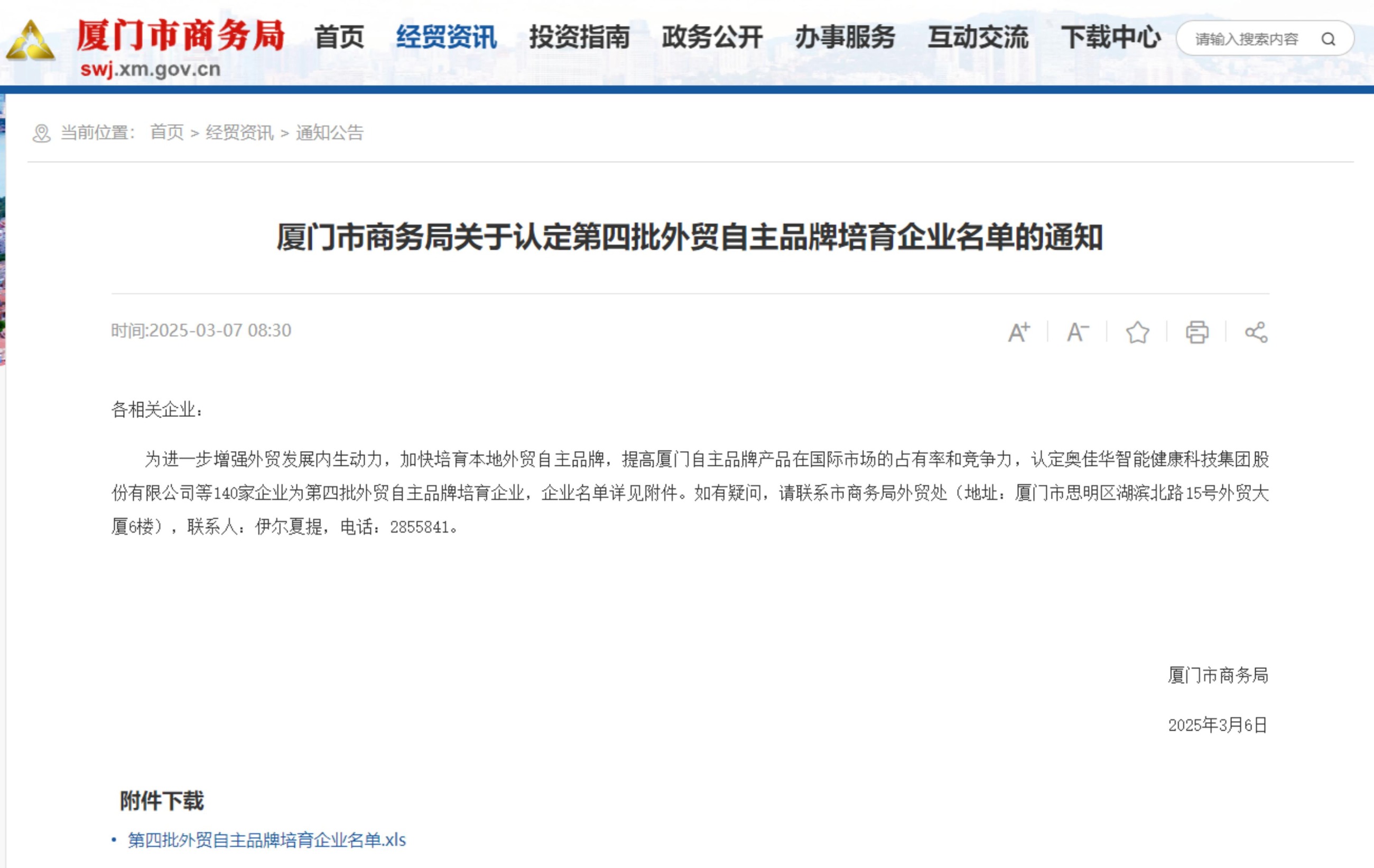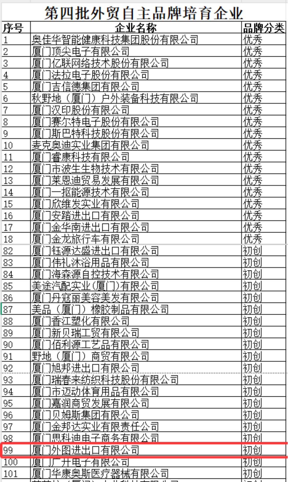 厦门市第四批外贸自主品牌培育企业
