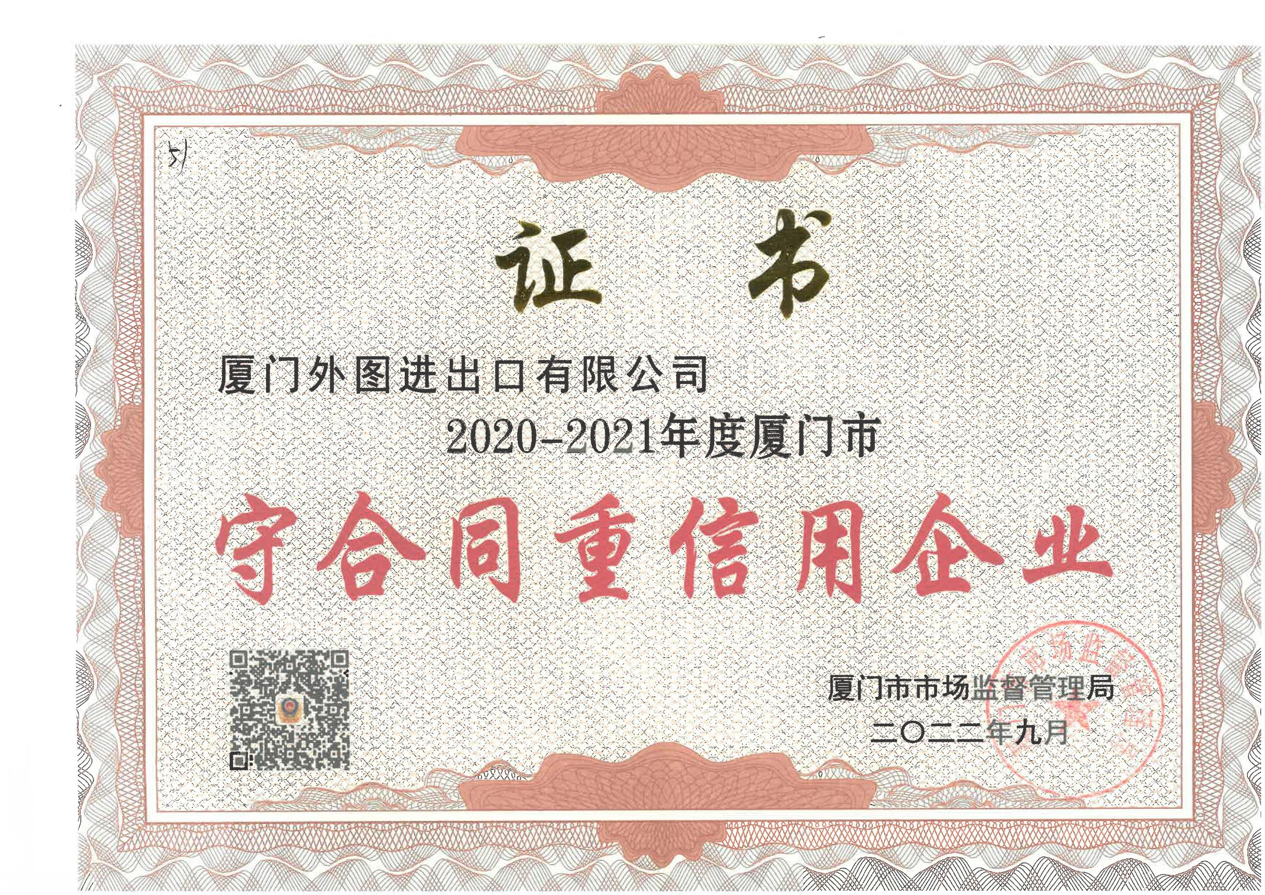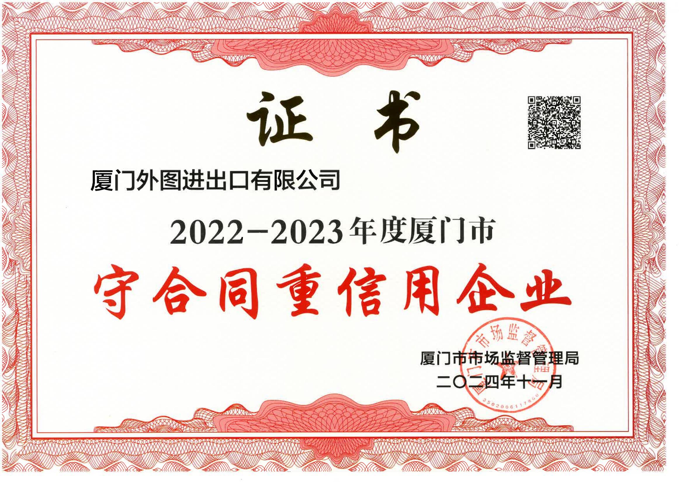厦门市守合同重信用企业--2011-2023年度